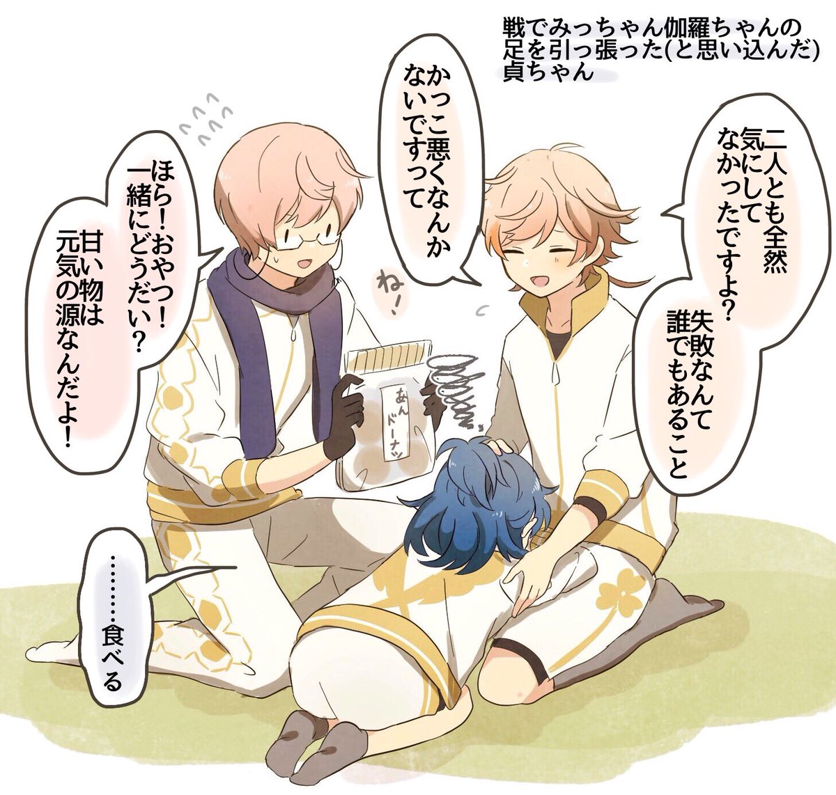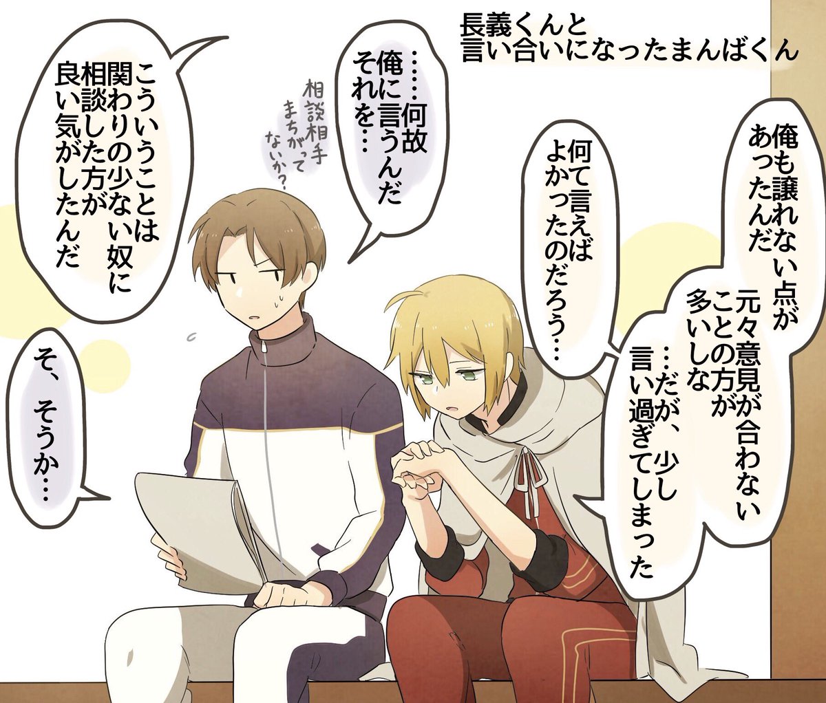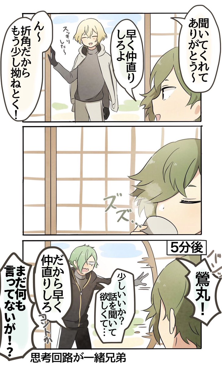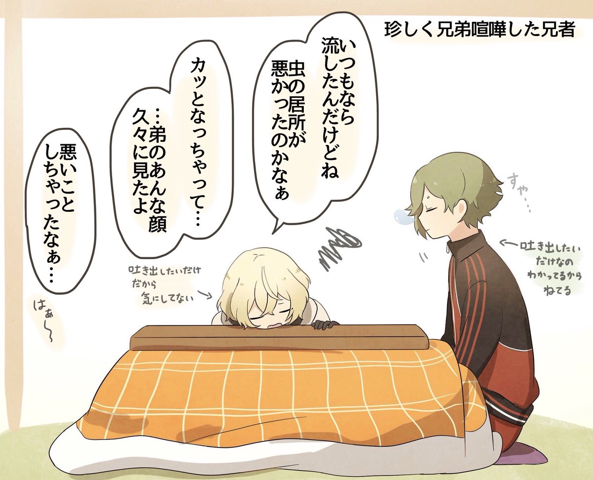 【刀剣乱舞】身近な誰かと喧嘩したあと(貞宗・山姥切・長谷部・髭切・膝丸・鶯丸)【とある審神者】 2019年05月07日20:00 カテゴリ:物吉貞宗亀甲貞宗 7 コメント Tweet @konohaitaria3: 白色より🍵 2019-05-02 18:51身近な誰かと喧嘩みたいになった時どの男士に相談したり甘えたりするのか考えるのが楽しい。意外な刃選でも面白い。 @tubasa_cat6012: ツバサ 2019-05-02 23:33@konohaitaria3 みんな可愛いです(*´ω`*)♥特に髭膝兄弟の思考が一緒とか、可愛いが過ぎる。それを寝ながらでも側にいて聞いてくれる鶯もいい👍✨こういうい関係性好きです✨ 返信 リツイ お気に @rin_toukenyou: 凛&花雪@とうらぶ用 2019-05-02 19:29最高に可愛いです萌えました元気出た twitter.com/konohaitaria3/… 返信 リツイ お気に @yuleishido: 紫導月@エレベーターの恐怖準備中 2019-05-02 18:57好きです twitter.com/konohaitaria3/… 返信 リツイ お気に 「物吉貞宗」カテゴリの最新記事 「亀甲貞宗」カテゴリの最新記事 コメント コメント一覧 (7) 1. 名無しの審神者 2019年05月07日 20:18 み、みんな可愛い…!!そして源氏兄弟ww 0 matome がしました 2. 名無しの審神者 2019年05月07日 20:40 兄者が怒ったケンカか… こわそうだな… そら膝丸も泣くわ 0 matome がしました 3. 名無しの審神者 2019年05月07日 23:06 みんな可愛かったなぁ😊 そして物吉!そこ代わってほしい! 0 matome がしました 4. 名無しの審神者 2019年05月07日 23:17 お膝かわいい😍 0 matome がしました 5. 名無しの審神者 2019年05月08日 06:25 源氏兄弟で笑った。喧嘩するほどなんとやら! 0 matome がしました 6. 名無しの審神者 2019年05月08日 09:58 鶯丸はなんだかんだでちゃんと要点はしっかり理解してそう 0 matome がしました 7. 名無しの審神者 2019年05月09日 21:42 物吉君にそこ代わってと言うべきか、貞ちゃんにそこ代わってと言うべきか どちらにせようらやましい。貞宗兄弟尊い。 0 matome がしました ※二次創作などの誹謗中傷コメントは管理人の判断で削除させていただきます。 悪質の場合「コメント禁止」になります。(「削除されました」と表示されます。) ※荒れそうな内容のコメントがあった場合は反応せずスルーでお願い致します。 ※イラストに全く関係ない雑談は禁止です。(違反した場合コメント削除) ※Twitterの反応がない場合はコメント欄から抜粋して掲載いたします。 反応がない記事には積極的にコメントをお願いします。 コメントする コメントフォーム 名前 コメント 記事の評価 リセット リセット 顔 星 情報を記憶 コメントを投稿する