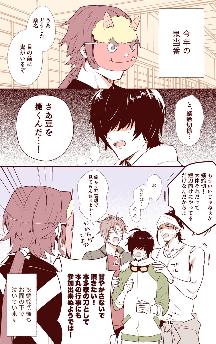 【刀剣乱舞】節分の桑名と三名槍【とある審神者】 2020年02月08日23:00 カテゴリ:三名槍桑名江 5 コメント Tweet @onipote_umaiii: owari@2/23閃華ア35a 2020-02-03 21:04節分の桑名と三名槍 @miyunezu: みゆ 2020-02-03 21:49@onipote_umaiii お面のしたでって。もう結局槍3人、可愛いです。 返信 リツイ お気に @omicyo: すずのき 2020-02-03 22:06こんな三名槍が好き twitter.com/onipote_umaiii… 返信 リツイ お気に @lucky_i_scream: 時々さん 2020-02-03 23:20杵ちゃんのやめたげてよぉが好き過ぎるwww twitter.com/onipote_umaiii… 返信 リツイ お気に 「三名槍」カテゴリの最新記事 「桑名江」カテゴリの最新記事 コメント コメント一覧 (5) 1. 名無しの審神者 2020年02月08日 23:40 お優しい… なんて優しい世界なんだろう… 私も泣きそうだわ 0 matome がしました 2. 名無しの審神者 2020年02月09日 06:27 蜻蛉切さん、わりとスパルタ😅 0 matome がしました 3. 名無しの審神者 2020年02月09日 06:51 その位の覚悟で挑めないと、今回の流行りの疫病の鬼は払えませぬ。しっかり豆まきして。石切丸にお話してもらいましょ。 0 matome がしました 4. 名無しの審神者 2020年02月09日 10:29 桑名くんの修行が困難だったらどないしよ(もちろん違うと思うが) 0 matome がしました 5. 名無しの審神者 2020年02月10日 21:55 鬼もお面が可愛くてもうほんと腹筋痛いww 0 matome がしました ※二次創作などの誹謗中傷コメントは管理人の判断で削除させていただきます。 悪質の場合「コメント禁止」になります。(「削除されました」と表示されます。) ※荒れそうな内容のコメントがあった場合は反応せずスルーでお願い致します。 ※イラストに全く関係ない雑談は禁止です。(違反した場合コメント削除) ※Twitterの反応がない場合はコメント欄から抜粋して掲載いたします。 反応がない記事には積極的にコメントをお願いします。 コメントする コメントフォーム 名前 コメント 記事の評価 リセット リセット 顔 星 情報を記憶 コメントを投稿する