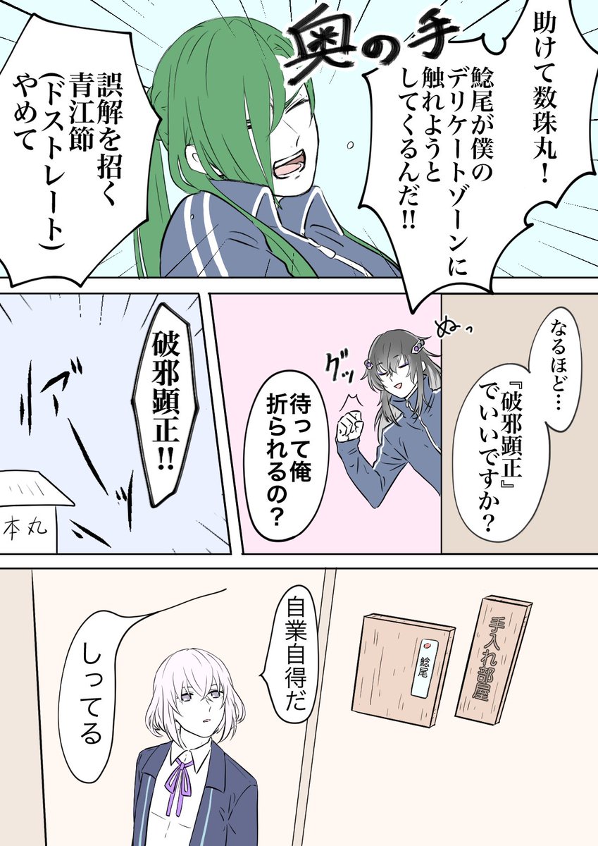 【刀剣乱舞】青江の奥の手(数珠丸・鯰尾・骨喰)【とある審神者】 2020年07月08日23:00 カテゴリ:にっかり青江数珠丸恒次 6 コメント Tweet @edosawaaan: えどさわ 2019-07-25 01:24鯰尾と青江がわちゃわちゃしてるだけ @tMQFXVR9ElVDn7b: 穹 2019-07-25 14:07@edosawaaan 来たセコムが来たぞーwww 返信 リツイ お気に @mogami105944ak: 柏桃屋(かしわ・ももや)@尻職人 2019-07-25 10:32@edosawaaan 面白すぎてフォローしようとしたら既にフォローしていました。大好きです。 返信 リツイ お気に 「にっかり青江」カテゴリの最新記事 「数珠丸恒次」カテゴリの最新記事 コメント コメント一覧 (6) 1. 名無しの審神者 2020年07月09日 10:02 脇差はだいたいこの2振りが化学反応を起こすなw 0 matome がしました 2. 名無しの審神者 2020年07月09日 14:48 えっ、破邪顕正って必殺技の名前とかそんな感じなんですか数珠丸さま 0 matome がしました 3. 名無しの審神者 2020年07月09日 17:51 ずず様怖いw 0 matome がしました 4. 名無しの審神者 2020年07月10日 10:39 誤解を招く青江節(ドストレート)www 0 matome がしました 5. 名無しの審神者 2020年07月10日 14:32 これ好きだけど なぜ一年前のが今…? 0 matome がしました 6. 名無しの審神者 2022年07月31日 17:39 誤解を招くA☆O☆E☆BU☆SHI 0 matome がしました ※二次創作などの誹謗中傷コメントは管理人の判断で削除させていただきます。 悪質の場合「コメント禁止」になります。(「削除されました」と表示されます。) ※荒れそうな内容のコメントがあった場合は反応せずスルーでお願い致します。 ※イラストに全く関係ない雑談は禁止です。(違反した場合コメント削除) ※Twitterの反応がない場合はコメント欄から抜粋して掲載いたします。 反応がない記事には積極的にコメントをお願いします。 コメントする コメントフォーム 名前 コメント 記事の評価 リセット リセット 顔 星 情報を記憶 コメントを投稿する