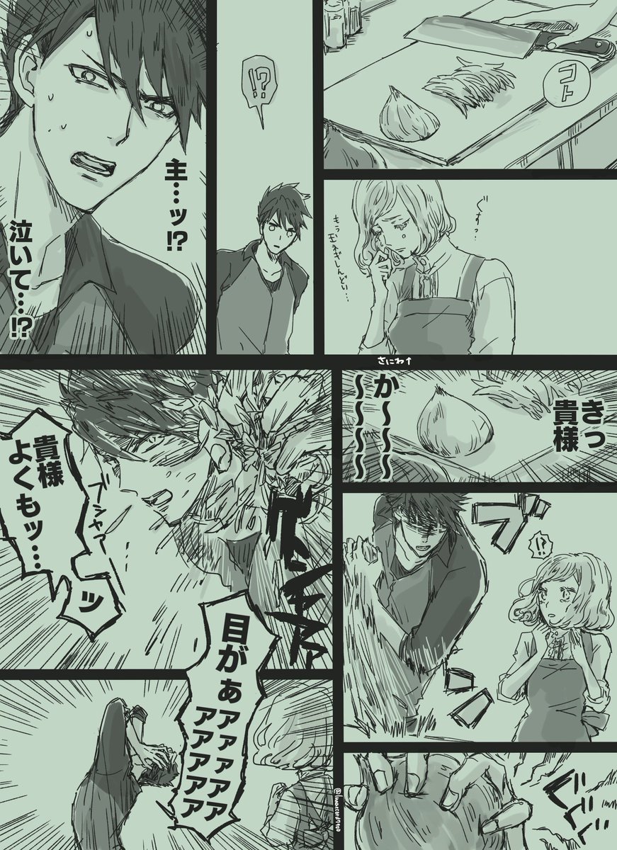 【刀剣乱舞】涙を流す主と大包平【とある審神者】 2020年09月30日21:00 カテゴリ:太刀大包平 14 コメント Tweet @lunarcord7700: 🐟️月緒(水中)🐟️ 2020-09-25 01:09大包平と審神者(勢い) @shidoktn: シド@原稿 2020-09-25 07:46@lunarcord7700 ばか可愛いですwww 返信 リツイ お気に @v6Fqkcg059oYCQt: ねこ鍋 2020-09-25 14:06@lunarcord7700 大包平は可愛いなぁ(*´ω`*) 返信 リツイ お気に 「太刀」カテゴリの最新記事 「大包平」カテゴリの最新記事 コメント コメント一覧 (14) 1. 名無しの審神者 2020年09月30日 21:22 大包平…キミは本当に良い奴ね… でも面白いw目がァアアアwぶしゃーw 0 matome がしました 2. 名無しの審神者 2020年09月30日 21:36 タイトルからシリアスかと思ったら普通にばかやってたw 鶯丸が脇目も振らず日記に書くんだろうね 0 matome がしました 3. 名無しの審神者 2020年09月30日 21:39 ばかわいすぎ! 0 matome がしました 4. 名無しの審神者 2020年09月30日 22:07 馬鹿は馬鹿でもばかわいいwww あのマイペースうぐさんが興味津々になるのも分かるわwww 0 matome がしました 5. 名無しの審神者 2020年09月30日 22:20 イケメンでいい奴なんだけどお馬鹿かわいいw 0 matome がしました 6. 名無しの審神者 2020年09月30日 23:15 素晴らしく忠節篤い武士だなあ。大好きだ。(ただ今回の場合はww)手がしばらく臭いますよ大包平! 0 matome がしました 7. 名無しの審神者 2020年10月01日 00:02 玉ネギの逆襲www 0 matome がしました 8. 名無しの審神者 2020年10月01日 04:12 玉ねぎは切る、炒めるで泣いた事は多いけど汁が入ったことはないな…どんだけ痛いんだろ 0 matome がしました 9. 名無しの審神者 2020年10月01日 07:19 鶯丸さんの腹筋が崩壊してそう。 0 matome がしました 10. 名無しの審神者 2020年10月01日 14:14 これ、タマネギの汁の付着した手で顔覆っちゃってるから余計に悪化してるだろww 0 matome がしました 11. 名無しの審神者 2020年10月01日 14:53 慌てて水で洗おうとして悪化してほしい 昔それやって余計「あ゛あ゛あ゛ーーーっ!!!!」ってなった記憶ある 冷蔵庫に顔突っ込むことを教えてくれたネットには感謝しきれない… しかし包丁を入れると明らかに危ない反応(目が染みて涙が出る)のにこれを意地でも切って料理しようとした先代たちは本当凄い… 0 matome がしました 12. 名無しの審神者 2020年10月03日 03:26 玉ねぎ「大変遺憾である!!(刻まれるわ握り潰されるわ最終的に食われるわでワイの方が被害者やわ!!)」 0 matome がしました 13. 名無しの審神者 2020年10月06日 09:15 頭の悪いジャーマンシェパードを彷彿させる 0 matome がしました 14. 名無しの審神者 2020年10月13日 20:27 桑名江「玉ねぎ、ダメにしちゃダメだよ。」 0 matome がしました ※二次創作などの誹謗中傷コメントは管理人の判断で削除させていただきます。 悪質の場合「コメント禁止」になります。(「削除されました」と表示されます。) ※荒れそうな内容のコメントがあった場合は反応せずスルーでお願い致します。 ※イラストに全く関係ない雑談は禁止です。(違反した場合コメント削除) ※Twitterの反応がない場合はコメント欄から抜粋して掲載いたします。 反応がない記事には積極的にコメントをお願いします。 コメントする コメントフォーム 名前 コメント 記事の評価 リセット リセット 顔 星 情報を記憶 コメントを投稿する